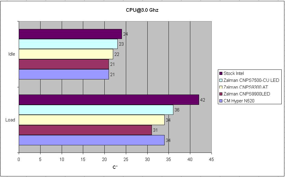 Come si può vedere dalla tabella qui sotto, l’Hyper N520 ha ottenuto ottimi risultati tra i dissipatori confrontati. L’ottima prestazione pero crea un piccolo “neo”: aumento del rumore ad alti regimi delle ventole.